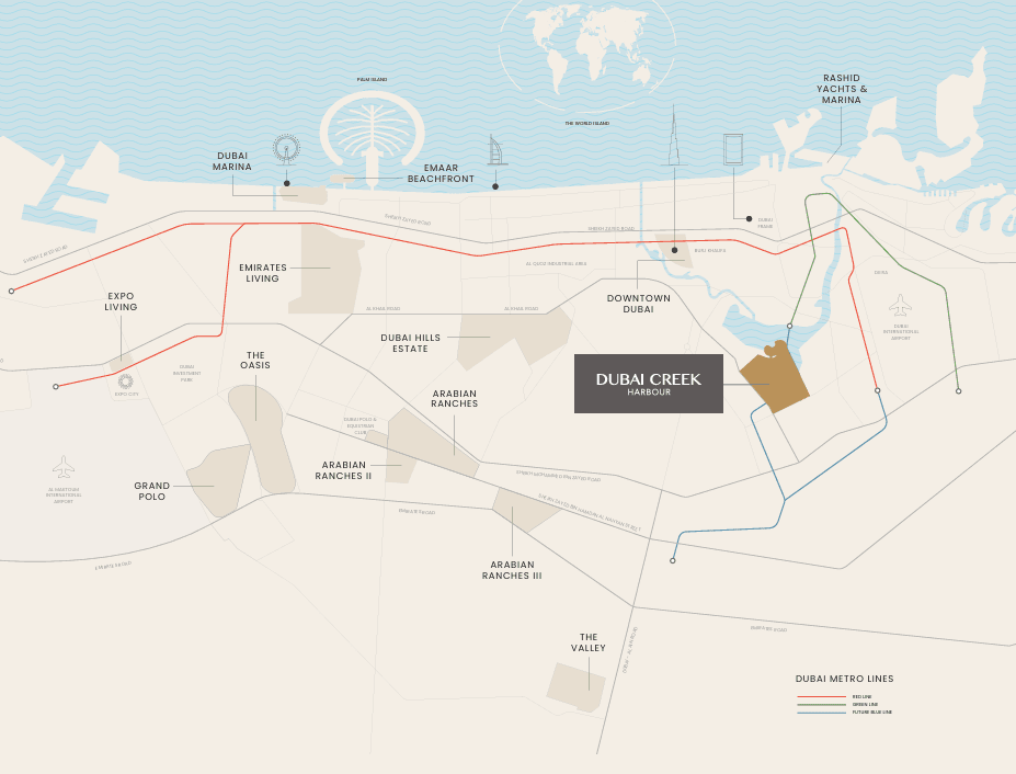 Creek Heaven (Creek Haven) is located in Dubai Creek Harbour, developed by Emaar Properties, with easy connectivity to major landmarks in Dubai.
