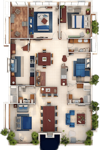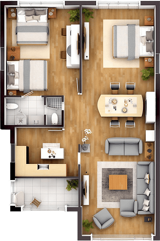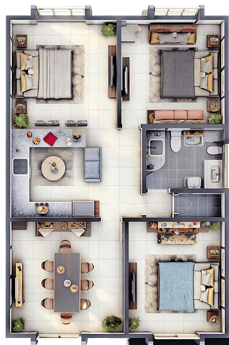 The kitchen is the soul of the home—a place where meals are prepared, stories are shared, and aromas fill the air. It often includes countertops, cabinetry, a stove or oven, and space for both cooking and connection.